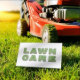 Plantilla de la tarjeta de presentación de la ducha de cuidado de jardín paisajista. Personalizar este diseño de plantillas de tarjetas de visita para cuidado de césped (paisajismo) para satisfacer sus necesidades y negocios. Esta plantilla de cuidado de césped tiene cortadora de césped y hierba verde.