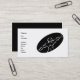 Plantilla de tarjeta de presentación con forma humana estilizada en negrita y ovalado negro. Ideal para entrenadores personales, constructores de cuerpos, profesionales de la salud o cualquier otra industria de desarrollo personal y sanitario. La parte posterior de la tarjeta está llena de negro del logotipo, para un efecto profesional.