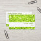 Tarjeta de visita con un diseño moderno con estrellas diseminadas sobre un estilizado fondo de "aspecto secuencial" en tonos verde limón y texto verde sobre fondo blanco Por favor tenga en cuenta que esta es una imagen de arte digital impresa, no brilla ni contiene purpurinas o secuencias reales.
