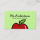 Plantilla de tarjeta de trabajo para profesores con diseño de manzana roja. Tarjetas de enseñanza elemental y de tutor para la escuela de gramática o el jardín de infancia. Gráficos educativos vectoriales.