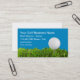 Tarjetas de visita con temática de oro en una plantilla simple con la imagen de una bola de golf en el fondo. Diseñado para un entrenador de golf, un club de golf o una tienda online de golf.