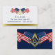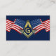 Una plantilla de tarjeta de visita gratuita con la bandera estadounidense y una plaza y brújula masónica de oro. Si usted es un veterano o simplemente desea expresar su patriotismo por nuestro gran país, los Estados Unidos de América, personalizar estas plantillas de diseño para hacerlo suyo. Entrega tus tarjetas personalizadas a otros hermanos en reuniones de lodge y otros eventos. Tema de color: rojo, blanco y azul. Categoría: masonería, estrellas y rayas.