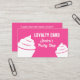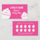 Plantilla de tarjeta de punch de fidelidad de pastelería de pastelitos. Personalizado de la empresa premia el diseño de la tarjeta para la tienda de pasteles y más. Personalizable de colores rosados calientes. Espacio para 10 estampillas/agujeros de perforación. Ofrecer a los clientes y clientes un descuento o un pedido gratuito. Impresión a dos lados con postres.