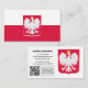 Tarjetas de visita: tarjeta de visita polaca moderna con bandera de Polonia por un lado y tus detalles junto con escandaloso código QR, pequeña bandera polaca del escudo de armas por el otro lado. Enlace personalizar sencillo en el código QR para tu sitio web o número de móvil, personaliza el nombre, los detalles de la dirección o cambia la bandera del lado del logotipo de tu empresa, la foto personal o cualquier otra imagen. Hacerlo su negocio o sólo tarjeta para mudarse de casa.