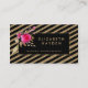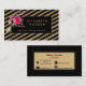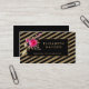 fotógrafo de rayas de purpurina de oro negro, planificador de bodas Boho, tarjetas de negocios Vintage Floral, tarjetas de visita Floral Event Planner, flores rosadas, incluso tarjetas de visita estilista con iconos de contacto en la parte posterior.
