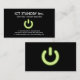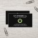 Una tarjeta de visita fresca de las TIC del llano con un recurso seguro que brilla intensamente del verde elegante o un símbolo "por intervalos" en un fondo ligero oscuro del rastro.