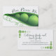 Imagen audaz de una vajilla de guisantes, muy atrevida y memorable para un chef, servicio de restauración o restauración, restaurante de comida natural u otro negocio gastronómico. Escribe tu nombre comercial y tu teléfono en la parte delantera; el resto de tu información puede ir en la parte trasera decorada.