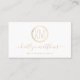 Estas tarjetas de visita son perfectas para cualquier tipo de negocio, desde peluquero y maquillador hasta organizadores de eventos y bodas. El diseño presenta círculos abstractos de moda en el efecto Relieve metalizado dorado con un monograma y un texto de letra manuscrito que coincide con el de la escritura a mano. Personalice fácilmente estas tarjetas cambiando la redacción de la plantilla para que sea única para usted y su empresa.