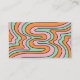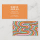 Una tarjeta de visita de estilo abstracto estilo años 70 con un estilo burgués y llamativo, con líneas onduladas abstractas y un estilo retro chunco para tu nombre. Colorido y atrevido en tonos naranja, rosa y verde.