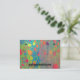 Un diseño abstracto y orgánico de círculos coloridos, líneas y formas de hoja sobre un fondo multicolor crea una hermosa tarjeta de presentación para los pendientes. Hay dos puntos negros que indican dónde se deben perforar los agujeros. NO SE PREPARARÁ NINGÚN AGUJERO en la tarjeta de presentación. La parte trasera es simple, con mucho espacio para más información de negocios.