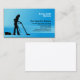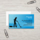 En esta tarjeta de presentación de Servicios de Limpieza, la silueta de una mujer que utiliza una aspiradora forma la imagen principal sobre un fondo azul degradado a rayas. Personalizar esta tarjeta inmediatamente con su nombre y detalles.