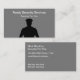 Plantilla de tarjeta de negocios de servicios de seguridad con imagen gráfica de un profesional de seguridad como un policía o un guardia de cuerpo en segundo plano en este diseño inteligente de dos lados que incluye impresión de dos lados. Presentado en material de tarjetas de visita brillante de alta calidad.