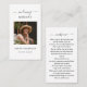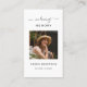Tarjeta de plegarias conmemorativas de la simpatía funeraria. Tarjeta de oración con una foto de la persona que se recuerda, el simpático título "En la memoria amorosa", su nombre y fechas de nacimiento/muerte. Esta tarjeta conmemorativa puede ser entregada a un amigo o miembro de la familia como recuerdo de una celebración del Día de la Vida, celebración del Día de la Memoria y servicio funerario, o enviada como tributo especial a los que no pudieron asistir. Esta tarjeta puede ser personalizada con una foto favorita y su elección de oración o poema. La fotografía tiene fines ilustrativos y puede cambiarse a una de las tuyas. Puedes cambiarlo a otro verso, poema o oración si lo deseas.
