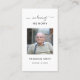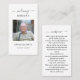 Tarjeta de plegarias conmemorativas de la simpatía funeraria. Tarjeta de oración con una foto de la persona que se recuerda, el simpático título "En la memoria amorosa", su nombre y fechas de nacimiento/muerte. Esta tarjeta conmemorativa puede ser entregada a un amigo o miembro de la familia como recuerdo de una celebración del Día de la Vida, celebración del Día de la Memoria y servicio funerario, o enviada como tributo especial a los que no pudieron asistir. Esta tarjeta puede ser personalizada con una foto favorita y su elección de oración o poema. La fotografía tiene fines ilustrativos y puede cambiarse a una de las tuyas. Puedes cambiarlo a otro verso, poema o oración si lo deseas.