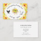 bellas peonías amarillas de verano con follaje y un ilustracion de pollo y escritura rústica para toda la información sobre un fondo blanco y kraft.