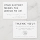 Con un diseño minimalista y elegante, esta tarjeta está diseñada para que las pequeñas empresas expresen su agradecimiento por compras y pedidos. Usa el espacio para incluir tu logo, un mensaje de descuento o un suave empujón para seguir tus páginas de medios sociales. Ideal para realzar el toque personal en su embalaje, estas tarjetas de agradecimiento son una manera cuidadosa de construir relaciones más fuertes con los clientes. Haga que sus clientes se sientan apreciados: solicite hoy mismo sus tarjetas personalizados.