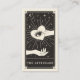 Esta tarjeta de visita presenta un diseño de estilo de tarjeta de tarot en una paleta de color negro y crema. Al revés hay espacio para los detalles sobre cómo cuidar los azotes después de un tratamiento. El ilustracion muestra una mano sosteniendo un ojo místico en un corazón rodeado de estrellas brillantes. Esto sería perfecto para cualquier esteticista, salon o especialista en puré que prefiera una tarjeta de visita de estilo alternativo y quiera hacer memorable su tarjeta de postcuidado con puré.