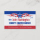 Campaña política - Comisionado del Condado - ¡Tarjeta de presentación electoral en rojo llamativo, blanco y azul! Fácil de personalizar y/o personalizar.