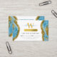 Una moda de mármol color azul acuático imita el diseño abstracto de Relieve metalizado dorado. Este elegante diseño de mármol líquido que combina tonos dorados crea un arte abstracto sofisticado. Una forma sencilla y profesional de introducir tu negocio. Iconos de medios sociales incluidos en el diseño de esta tarjeta de visita para uso personal. Una tarjeta de fidelización de Relieve metalizado de oro de mármol azul ideal para un salón de belleza, peluquería estilista, maquillador, cosmetólogo, etc. Personalice sus detalles para crear su propia tarjeta de visita única.