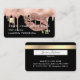 Una tarjeta de negocios única y llamativa al estilo de una tarjeta de débito o crédito. Elegante diseño rosa y negro con brillo falso y beso de labios holográfico falso y gotas.