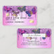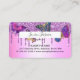 Una moderna tarjeta de crédito de purpurina lila morada gotea mariposa. Una forma creativa y única de compartir información comercial. Ideal para profesionales de la industria de la belleza, empresarios, planificadores de eventos, técnicos excéntricos, artistas de uñas, peluqueros, maquilladores y más. Tenga en cuenta que se simulan elementos holográficos y purpurinas.