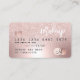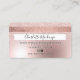 Una elegante y moderna tarjeta de crédito estilo tarjeta de crédito de peluquería y maquillador con una tipografía moderna de escritura en un fondo de Relieve metalizado metálico rosa de moda falso oro y rosa purpurina dorado brilla en el color oscuro. todo el texto es personalizable, agrega tus medios sociales. Con una franja de oro falsa rosa. Añada su logotipo, su código de monograma y QR.