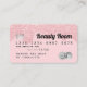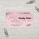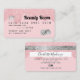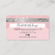 Una elegante y moderna tarjeta de crédito estilo tarjeta de crédito Hair y maquillaje artista con una moderna tipografía de guion en una moda purpurina falso rosa chispas chispas y glam soft pastels color rosa fondo de moda. todo el texto es personalizable, agrega tus medios sociales. Con una franja de plata falsa. Añada su logotipo, su código de monograma y QR.