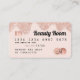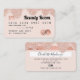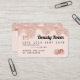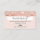 Una elegante y moderna tarjeta de crédito de diseño estilo tarjeta de crédito con una moderna tipografía de escritura en una moda falsa purpurina de oro rosa gotea en suave rosa pastel. todo el texto es personalizable, agrega tus medios sociales. Con una franja de oro falsa rosa. Añada su logotipo, su código de monograma y QR.