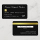 Una tarjeta de negocios simple pero elegante con estilo de tarjeta de crédito o débito en negro con elementos dorados holográficos falsos. Puedes cambiar el número de tarjeta y la fecha utilizando el menú de edición.