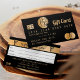Una elegante y moderna belleza El cabello y el maquillaje de la tarjeta de crédito estilo tarjeta de crédito certificado tarjeta de visita con una tipografía de escritura moderna en un Relieve metalizado de moda negro y oro. todo el texto es personalizable, añada tus medios sociales. Con una franja de oro falsa. Añade tu logotipo, tu monograma.