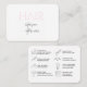 Esta tarjeta está diseñada específicamente para que los clientes de extensión capilar se lleven a casa como recordatorio de cómo cuidar sus extensiones capilares. La tarjeta es lo suficientemente pequeña como para caber fácilmente en un kit de atención al cliente. Esta tarjeta tiene algunas de las reglas más esenciales que los clientes deben seguir para cuidar adecuadamente su pelo.