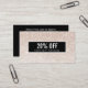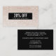 Descuento moderno, para el trabajo en red o tarjeta de cupón con imagen digital de un patrón de secuencia de champán rosa. Superposición de franja negra. Ideal para los profesionales de belleza, moda, entretenimiento y eventos. Nota: La secuencia es un efecto impreso, no hay purpurina en la tarjeta. Ideal para salones de belleza, spas, cosmetólogos, esteticistas, estudios de danza, boutiques, diseñadores, estilistas de cabello y moda o cualquier otro profesional que conozca la imagen. Ideal para artistas de uñas, peluqueros, tiendas de regalos y más