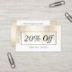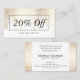 Una serie de puntos falsos de oro en cascada crean un diseño llamativo en este diseño elegante de tarjetas de descuento/cupón. Está situado sobre un fondo blanco para un hermoso motivo tonal. Actualice el texto promocional de su propia oferta. Ideal para salones de belleza, salones de uñas, estilistas de pelo, boutiques, spas y más. Arte y diseño © 1201AM Design Studio