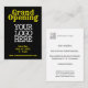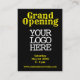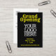 El diseño presenta una gran tipografía amarilla sobre fondo negro, diseñada para atraer la atención y ser fácil de leer. Sube el logotipo de la empresa y actualiza la información de fecha y hora de la Gran Apertura, así como el sitio web de la empresa o cualquier información adicional que desee compartir con sus clientes. ¡Salud y felicitaciones por tu nueva aventura!