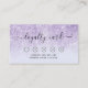 Tarjetas de fidelización de negocio con un efecto purpurina morado. La parte trasera de la tarjeta puede ser personalizada con su logo, sitio web y medios sociales.
