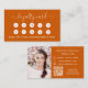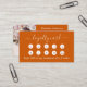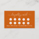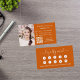 Un fondo de color naranja quemado a la moda, texto blanco Al frente: Añade un descuento. Atrás: Personaliza y agrega tu foto, nombre, título, número de teléfono, correo, dirección del sitio web, código qr a tu sitio web.