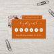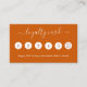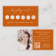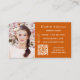 Un fondo de color naranja quemado a la moda, texto blanco Al frente: Añade un descuento. Atrás: Personaliza y agrega tu foto, nombre, título, número de teléfono, correo, dirección del sitio web, código qr a tu sitio web.