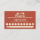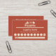 Una carta de fidelidad en tonos marrones rojos para pizzería, food truck, comida para llevar a casa o cocinero, e ilustrada con una rebanada de pizza, un gorra del chef y un edificio. Puede distribuirlos a sus clientes para que generen lealtad. Éstos vienen con 9 círculos vacíos por 10° gratis.