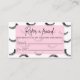 Presentamos nuestra elegante tarjeta de tamaño de negocio "Refiérase a un Amigo" Fill-in-the-Blank Size, diseñada para ayudar a los artistas y salones a expandir su clientela con facilidad y estilo. Estas hermosas tarjetas cuentan con un centro de color rosa suave y un elegante diseño de azotes, lo que las convierte en una atractiva adición a los materiales de marketing de su empresa. La parte delantera de la tarjeta muestra orgullosamente "Refiérase a un Amigo", ofreciendo una promoción convincente: "Ambos reciben un 10% de descuento en su próximo Servicio Lash". Esta atractiva oferta anima a los clientes actuales a presentar nuevos clientes, premiando a ambos fiestas con un descuento que aumenta la fidelidad y el compromiso de los clientes. Cada tarjeta está equipada con líneas designadas para "Referencias por" y "Nuevo Cliente", lo que permite un seguimiento y aplicación sin problemas de descuentos. Perfecto para salones y profesionales independientes de la extensión de latigazos, estas tarjetas de remisión son suministros esenciales para pequeñas empresas. Sirven como una poderosa herramienta para atraer nuevos clientes, mejorar la retención de los clientes y crear una comunidad vibrante alrededor de su marca.