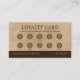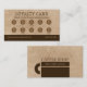 Esta es una tarjeta de fidelidad para una cafetería. El diseño presenta una encantadora textura de papel antiguo con granos de café y ofrece descuentos a clientes fieles.