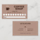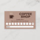 Una simple tarjeta de fidelidad en tonos marrones con un ilustracion para una cafetería, un bar, un restaurante, una tostadora de café, una tienda de té, etc. Puede distribuirlos a sus clientes para que generen lealtad. Éstos vienen con 9 círculos vacíos por 10° gratis. En la parte posterior, encontrará información sobre el personalizable decorada con iconos y horarios de apertura.