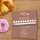 Tarjeta de fidelidad con ilustracion de cruasán, donut y macarón sobre fondo marrón claro. Puede distribuirlos a sus clientes para que generen lealtad. Éstos vienen con 9 círculos vacíos por 10° gratis. En la parte trasera del hotel hay información completa sobre el personalizable, incluido el horario de apertura.