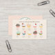 ¡Una manera dulce de recompensar a los clientes más fieles! Marque la visita de cada cliente a su panadería, y después de diez compras, recompense con un cupcakes o pasteles gratis. Tarjetas de fidelidad a la panadería de delicias y bonito con diferentes pastelitos de fresa, chocolate y vainilla con rociadores, floración en forma de flor y fresas en un paisaje de fondo pergamino. Los colores pastel aportan un toque de dulzura a esta carta de recompensas. Personalizar la parte delantera y trasera de la tarjeta con su propio texto. Perfecto para el pastelero, el propietario de la panadería o cualquier persona que empiece a vender sus propios productos horneados. Pintura © Chrissy H. Studios, LLC. Todos Los Derechos Reservados.