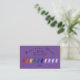 Se trata de una tarjeta de promoción de fidelidad de negocios morada con 10 hadas en la parte delantera que se puede sellar y usar para una promoción de fidelidad. Personalice esta tarjeta con su nombre comercial, dirección, ciudad, estado, zip, número de teléfono y correo electrónico. La palabra lealtad se puede eliminar, editar o dejar tal cual. La parte posterior de la tarjeta tiene un solo hada con la palabra "notas" que también se puede editar o dejar tal como está.