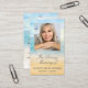Tema de playa con tu foto favorita en marco cuadrado. Se utiliza tipografía moderna y script. En la parte posterior de la tarjeta está la oración que se puede personalizar superponiendo el fondo de la playa.