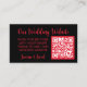 Diseñadas para nuestra Colección de Piezas Til Death Do Us, estas tarjetas del recinto coinciden perfectamente con toda la suite boda. Diseñado con un área para cargar su propio código QR o generar uno a partir de la herramienta de diseño, utilizando la ficha elementos de la izquierda e introduzca su URL. Esta es una manera fácil para que sus huéspedes puedan acceder a RSVP o ver su lista de regalos de su boda y acceder a más información sobre el evento. Todo el texto se puede editar desde la página del producto, o para cambiar el estilo o el color del tipo de letra o para generar un código QR, utilice la herramienta de diseño. La tarjeta contiene rosas negras y rojas que se pueden ajustar en toda esta colección.