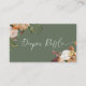 Esta elegante tarjeta de gabinete de nuestras colecciones de Boho Florals cuenta con elegantes flores de color acuático naranja-terracota-verde otoñal quemadas con delicada vegetación, junto con un moderno tipo de letra de escritura. Perfecto para otoño y otoño. Para realizar cambios avanzados, seleccione Personalizar -> Editar usando la herramienta Diseño.