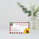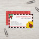 Cute mamá llamando a la tarjeta para tus fechas de juego con tu nombre en grandes letras rojas en negrita, y tu información de contacto en un divertido tipo de letra negra. Agregue los nombres de sus hijos en un guión encantador. Todo con un fondo blanco enmarcado por un borde rojo y rayas blancas y negras. Una mariquita se sienta sobre un girasol amarillo brillante en una esquina, y otra mariquita se sienta en una rama verde de hojas en la esquina opuesta. En la parte trasera hay puntos de polka rojos y blancos.
