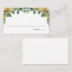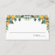 Tarjetas de acompañamiento con ramas de vegetación con clementinas naranjas. Escriba los nombres de los invitados y los números de la tabla.