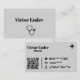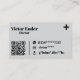 Presente su profesión médica con estilo usando esta tarjeta de visita de médico elegante y profesional. El diseño presenta un fondo gris claro con tipografía negra en negrita para el nombre de Victor Ender y Médico de títulos. En la esquina superior derecha se coloca un icono minimalista de la cruz médica negra, mientras que en la parte izquierda se incluye un código QR escaneado para acceder rápidamente a la información de contacto o perfil.